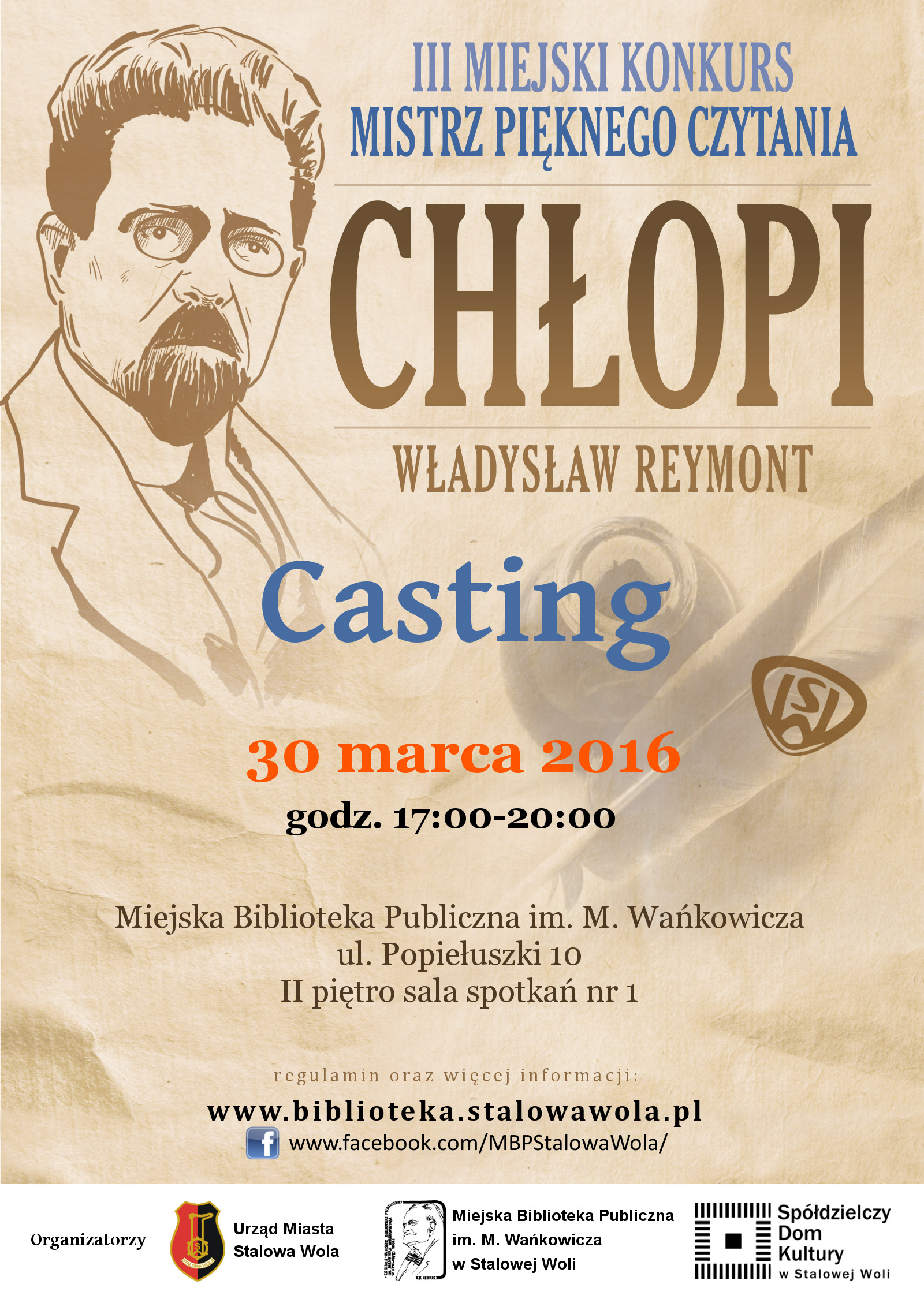 Rusza 3. edycja miejskiego konkursu „Mistrz pięknego czytania”. Dla tego, kto najlepiej zinterpretuje fragment „Chłopów” Władysława Reymonta czeka nagroda w wysokości 1000 złotych. Pozostali uczestnicy konkursu mogą zaś liczyć na nagrody finansowe z puli 800 złotych. Zostały 2 tygodnie aby poćwiczyć i zgłosić się na eliminacje.