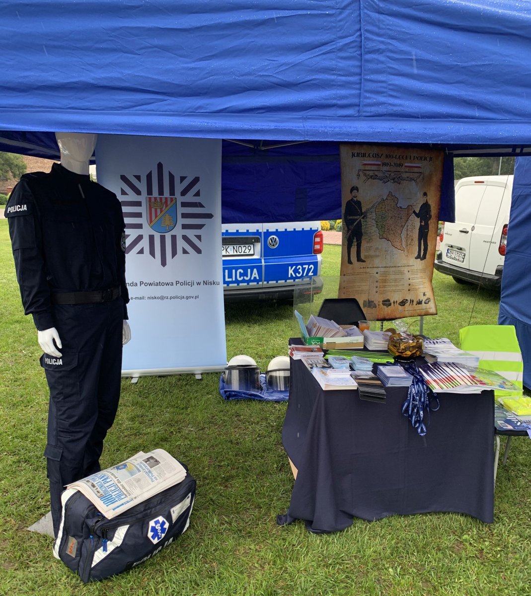 Dorośli uczestnicy spotkania mogli porozmawiać z dzielnicowym, na temat szeroko pojętego bezpieczeństwa oraz lokalnie zdiagnozowanych problemach. Na stoisku nie zabrakło słodkiego poczęstunku jak również licznych ulotek czy broszur o tematyce prewencyjno – profilaktycznej.