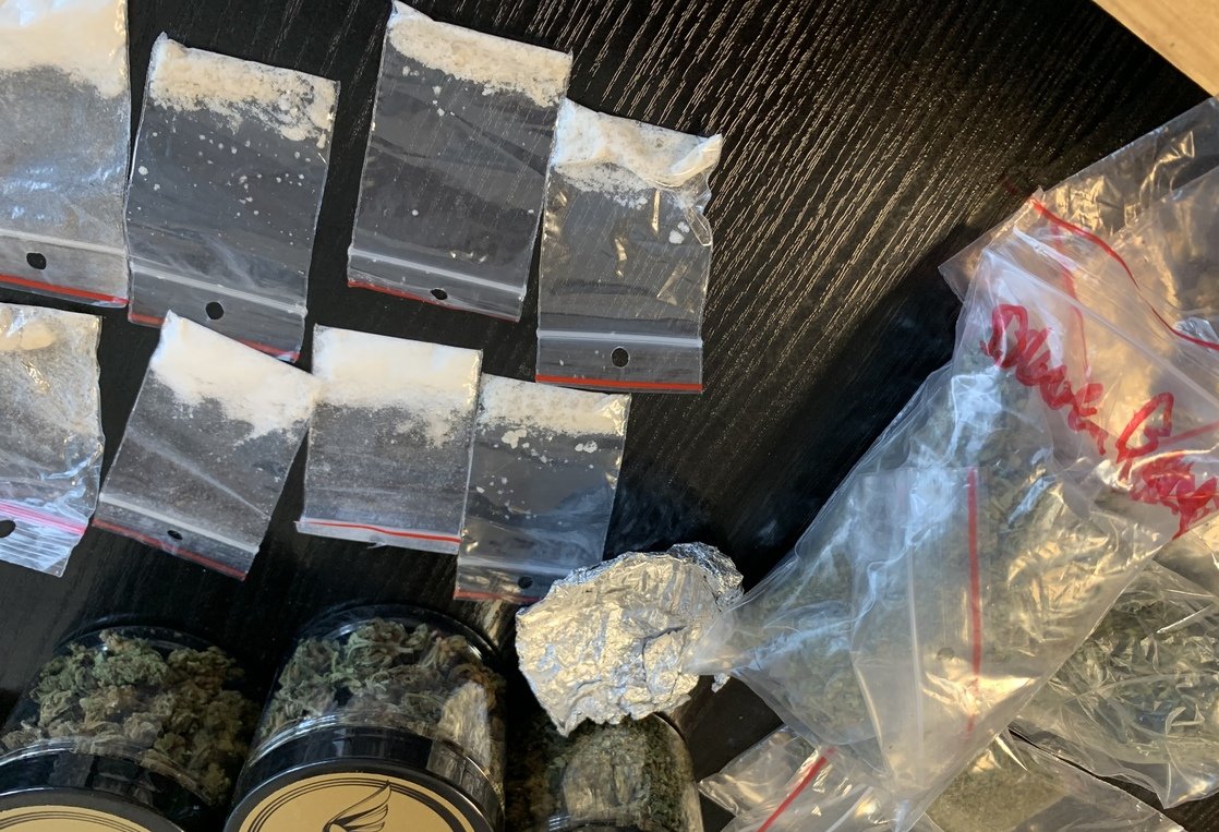 Podczas wykonywanych czynności policjant wspólnie z funkcjonariuszem Służby Celno-Skarbowej oraz jego psem do tropienia narkotyków "Rubi", znaleźli w plecaku mężczyzny oraz w zajmowanym przez niego mieszkaniu środki odurzające-marihuanę i mefedron.