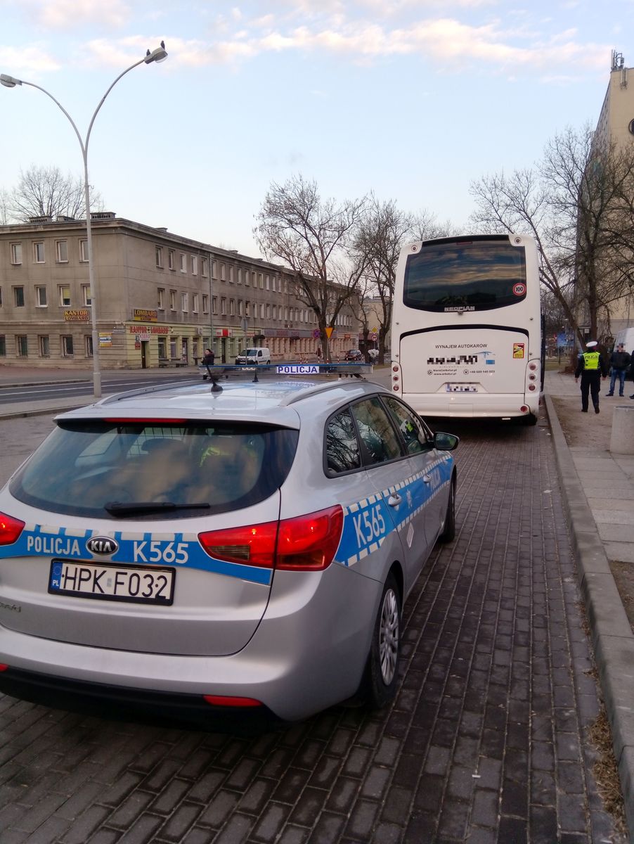 Policyjny punkt kontroli autobusów w Stalowej Woli