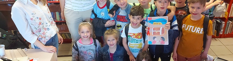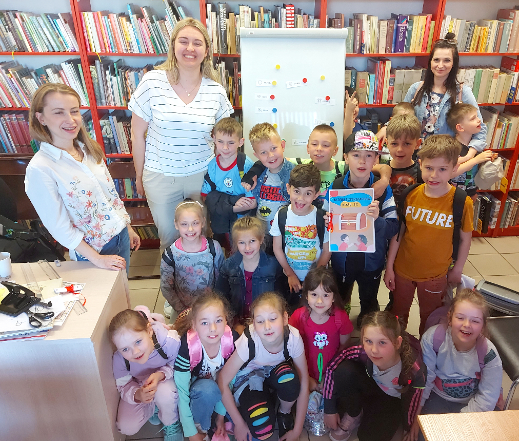 Dzieci zapisywały ważne dla nich wartości, którymi tak naprawdę może być wszystko. Okazało się, że najcenniejsze tj. rodzina, przyjaciele, zdrowie czy marzenia nie są do kupienia, można je natomiast zawsze nosić w sercu i pamięci. Nasi goście szukali tajemniczych kopert, z zapisanymi przykładowymi wartościami, ukrytych pośród bibliotecznych półek. Poznali również bohaterów „Wielkiej księgi superskarbów” i wartości. Następnie dzieci zilustrowały najważniejsze dla siebie superskarby. Stworzyli piękne rysunki, z których powstały klasowe księgi superskarbów. To piękna pamiątka, do której będą mogli wrócić w każdej chwili.