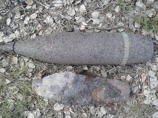 Pociski artyleryjskie w lesie