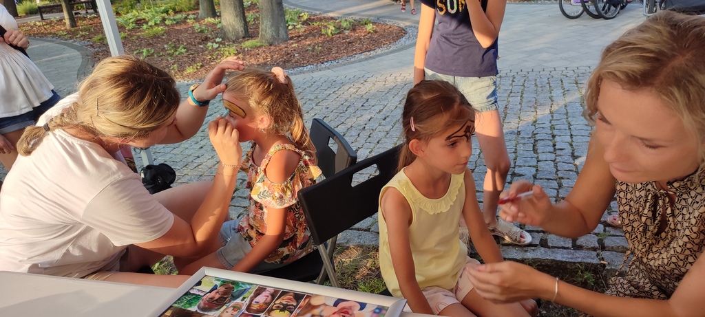 Mimo, że żar lał się z nieba, na naszym stoisku podczas niedzielnego Miejskiego Pożegnania Wakacji zjawiło się liczne grono młodych miłośników malowania twarzy.