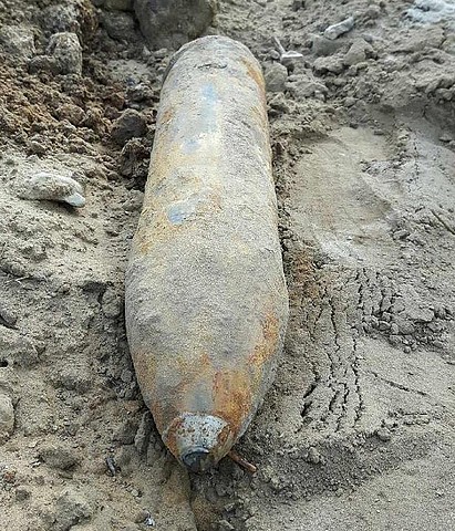 O znalezisku powiadomiono saperów., którzy zneutralizują niebezpiczny przedmiot.