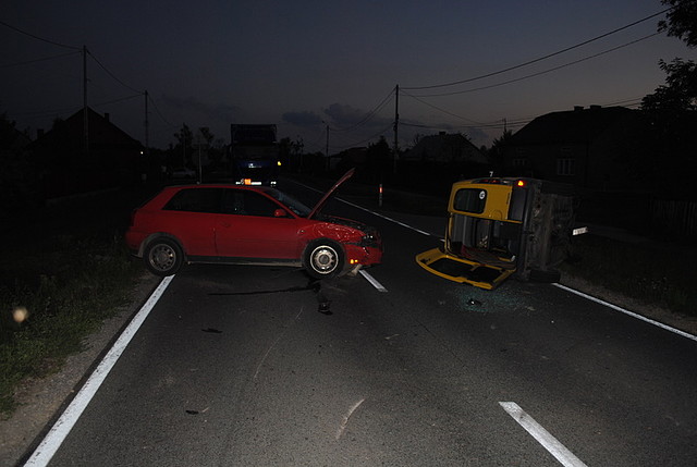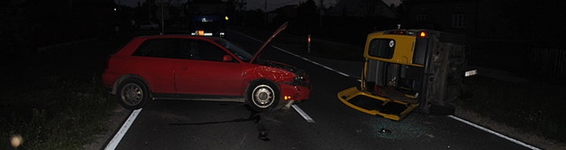 Do wypadku doszło w piątek o godz. 19 w Nowosielcu. Ze wstępnych ustaleń policjantów wynika, że kierujący renault kangoo 18-latek, rozpoczął manewr wyprzedzania jadącego przed nim pojazdu pomimo, że był już wyprzedzany przez audi. W wyniku uderzenia renault przewrócił się na bok.