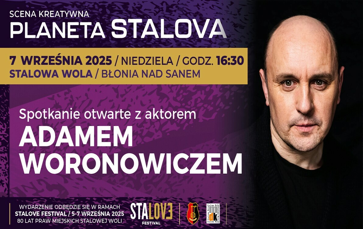 Już w najbliższą niedzielę 7 września, na Scenie Kreatywnej Stalove Festival pojawi się wyjątkowy gość – Adam Woronowicz. Aktor teatralny i filmowy, którego widzowie znają z wielu wybitnych ról. Tym razem spotkacie go w Stalowej Woli podczas Stalove Festival!  To niepowtarzalna okazja, by zobaczyć i posłuchać artysty, który od lat inspiruje swoją twórczością i osobowością.