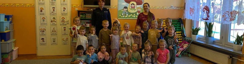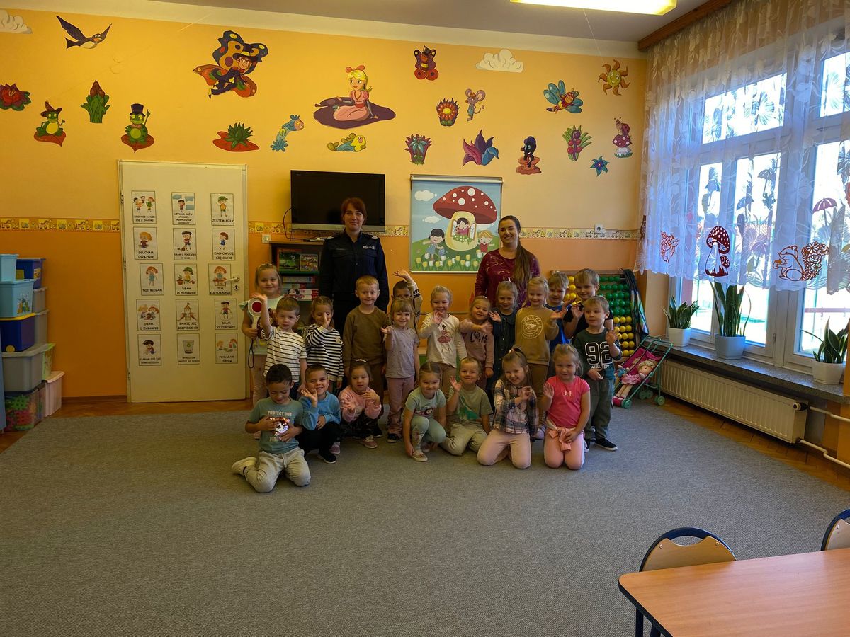 Nie zabrakło wspólnych dyskusji na temat bezpieczeństwa na drodze oraz właściwego zachowania na terenie placówki jak i w czasie wolnym od zajęć. Policjantka przypomniała dzieciom znaczenie podstawowych znaków i sygnałów drogowych oraz omówiła przepisy ruchu drogowego dotyczące pieszych i rowerzystów oraz zasady poruszania się hulajnogami. Funkcjonariuszka przybliżyła temat odpowiedzialności prawnej nieletnich dla starszych uczestników spotkania. Najmłodsi słuchacze otrzymali elementy odblaskowe.