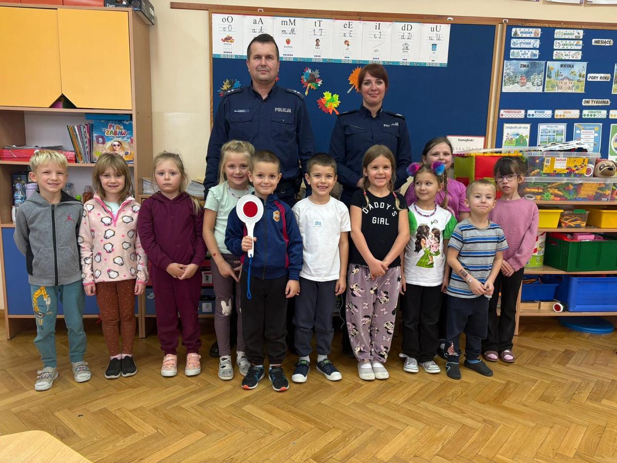 Podczas spotkania policjanci omówili zasady bezpiecznej drogi do szkoły, zwracając uwagę na właściwe korzystanie z przejść dla pieszych oraz obowiązek noszenia elementów odblaskowych. Uczniowie dowiedzieli się również, jak ważne jest przewidywanie sytuacji na drodze oraz zachowanie ostrożności w kontaktach z nieznajomymi.