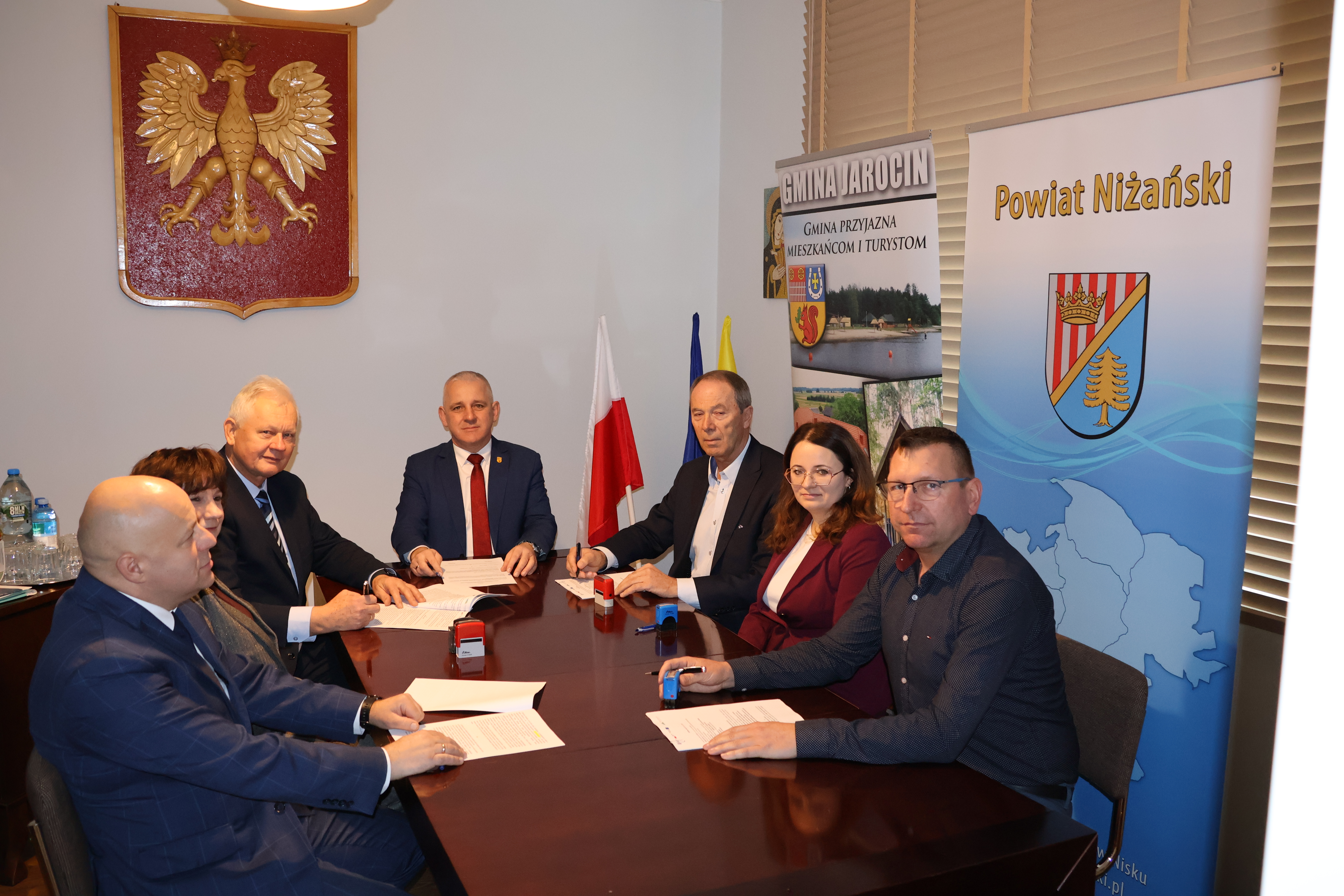 Umowę na realizację zadania, ze Strony Lidera – Gminy Jarocin, podpisali: Wójt Gminy Tomasz Podpora, Z-ca Wójta Andrzej Kata i Skarbnik Gminy Karolina Małek oraz Paweł Lach właściciel Firmy LACH – POL. Przy podpisaniu uowy obecna była również Radna Rady Powiatu Niżańskiego Alicja Habuda-Cichoń.