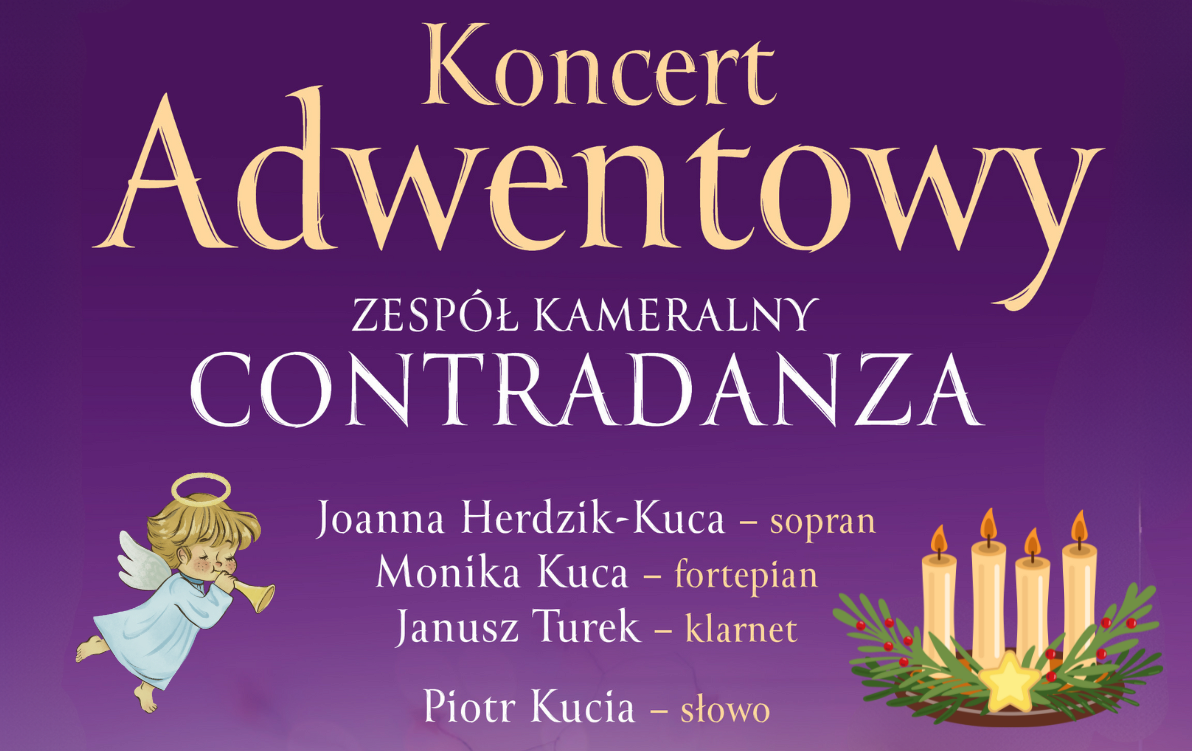 13 grudnia o godzinie 19.00 w Klasztorze Braci Mniejszych Kapucynów w Stalowej Woli – Rozwadowie odbędzie się Koncert Adwentowy, podczas którego zespół kameralny Contradanza zaprezentuje utwory m.in. J.S.Bacha, M. Manganiego, W.A. Mozarta, M. Frisiny, K. Jenkinsa,