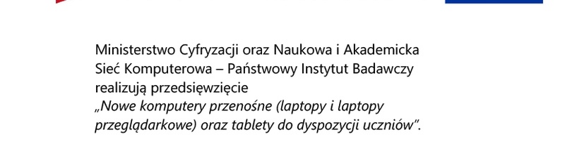 Ministerstwo Cyfryzacji, we współpracy z Ministerstwem Edukacji Narodowej, realizuje zadanie w ramach Krajowego Planu Odbudowy i Zwiększania Odporności (KPO) pn. „Wdrażanie inwestycji C2.1.2 Wyrównanie poziomu wyposażenia szkół w przenośne urządzenia multimedialne – inwestycje związane ze spełnieniem minimalnych standardów sprzętowych, wskaźnik C15G Nowe komputery przenośne (laptopy, laptopy przeglądarkowe i tablety) do dyspozycji uczniów”. Szkoły prowadzone przez Powiat Stalowowolski, z myślą o wspieraniu uczniów w ich codziennej edukacji, zostaną bezpłatnie wyposażone w nowoczesny sprzęt.