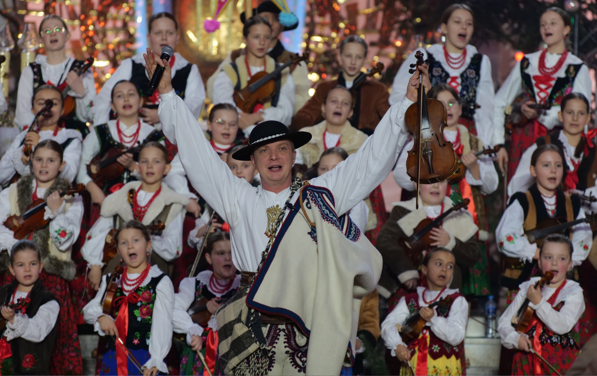 Już od pierwszych dźwięków było jasne, że nie będzie to zwykły występ. Ponad dwustuosobowy zespół z Podhala stworzył monumentalną, a zarazem niezwykle subtelną opowieść o Bożym Narodzeniu – opowieść zakorzenioną w polskiej tradycji, ale opowiedzianą językiem świeżym, poruszającym i pełnym emocji. Góralski folklor przekroju wszystkich pokoleń, klasyczna precyzja i nowoczesna wrażliwość muzyczna, splotły się w jedną, spójną całość, która wypełniła bazylikę potężnym, a jednocześnie ciepłym brzmieniem.