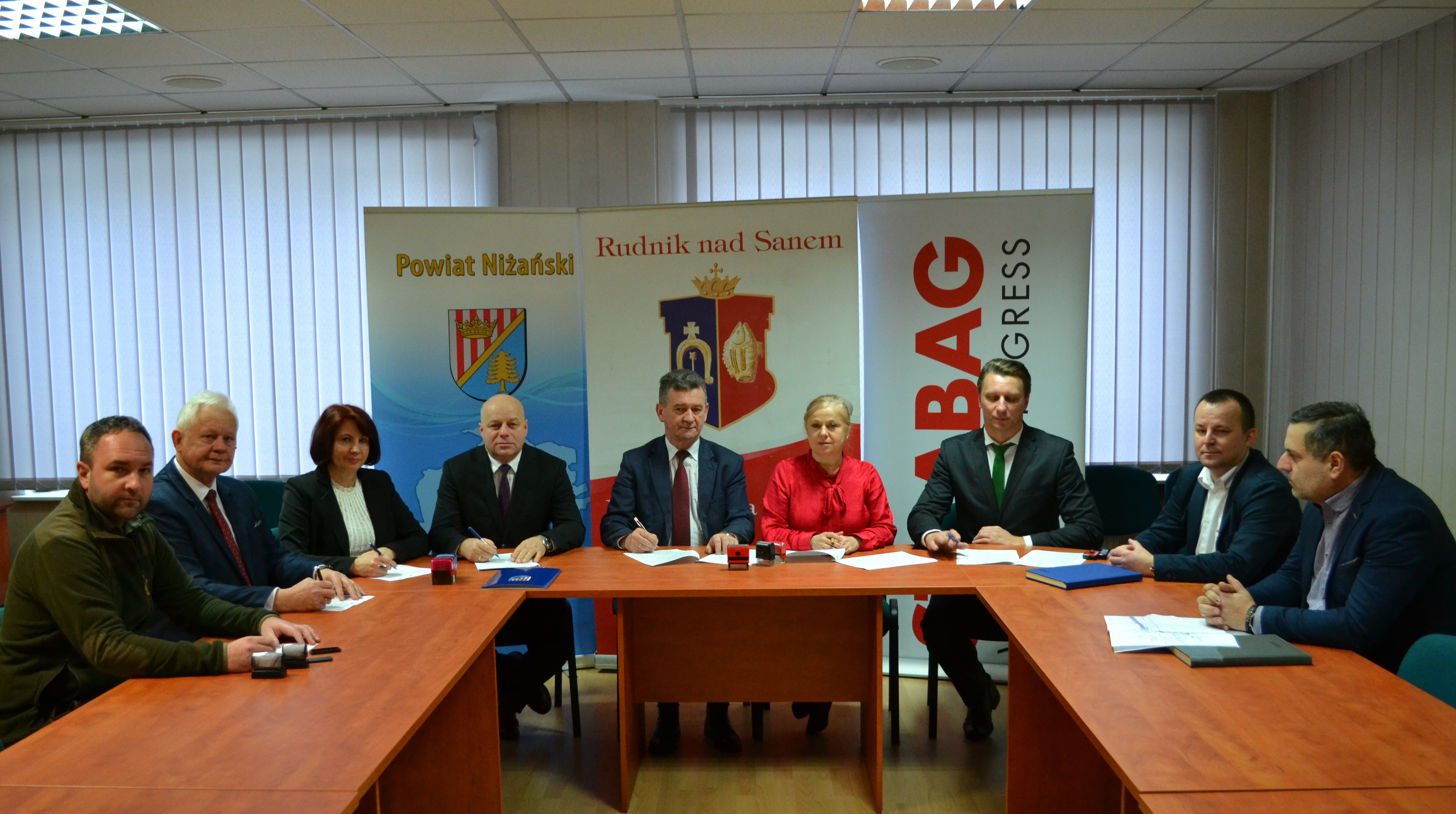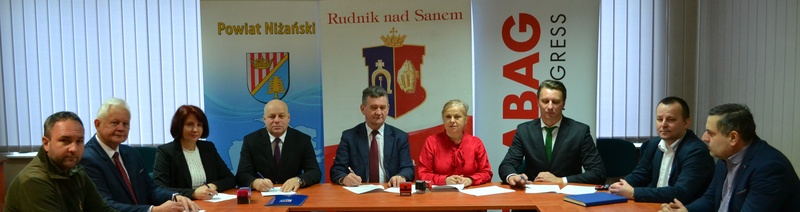 Zadanie będzie realizowane wspólnie na podstawie zawartego porozumienia, w którym Gmina i Miasto Rudnik nad Sanem pełni rolę Lidera, a Powiat Niżański jest Partnerem przedsięwzięcia. Przy podpisaniu umowy obecni byli: ze Strony Lidera: Burmistrz Gminy i Miasta Rudnik nad Sanem – Tadeusz Handziak, Zastępca Burmistrza – Dariusz Świta, Skarbnik Gminy – Grażyna Reichert, ze strony Partnera Projektu: Starosta Niżański – Robert Bednarz, Wicestarosta – Józef Sroka, Skarbnik Powiatu – Maria Bednarz, oraz Dyrektor Techniczny Oddziału Rzeszów firmy STRABAG Sp. z o.o. - Maciej Łukaszek.