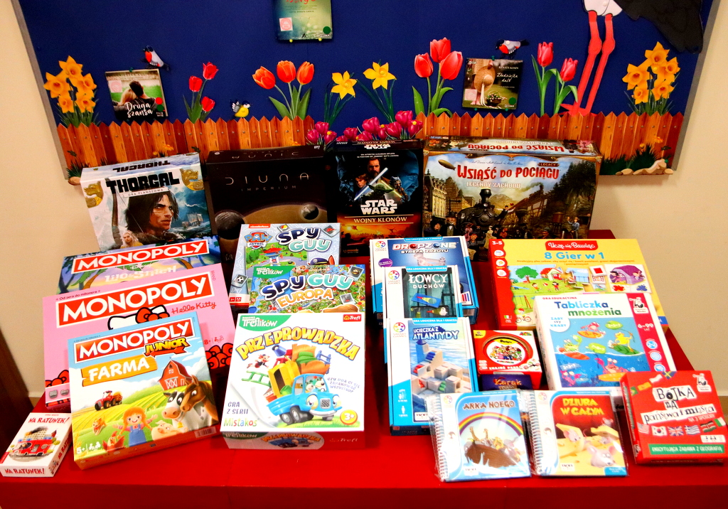 Biblioteczna kolekcja została także wzbogacona o gry edukacyjne, które pomagają rozwijać różne umiejętności. Wśród nich znalazły się m.in. Tabliczka mnożenia, gry związane z geografią, a także tytuły wspierające logiczne myślenie i koncentrację.