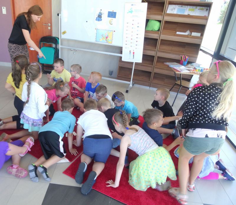 Po zapoznaniu się z teorią przyszedł czas na praktykę, czyli zabawa w państwa unijne, płacimy euro oraz literowe poszukiwania. Na koniec uczestnicy pogadanki dowiedzieli się jak brzmi "dzień dobry" w językach państw Unii Europejskiej, rozwiązywali krzyżówki i rebusy by utrwalić swą wiedzę o państwach unijnych.