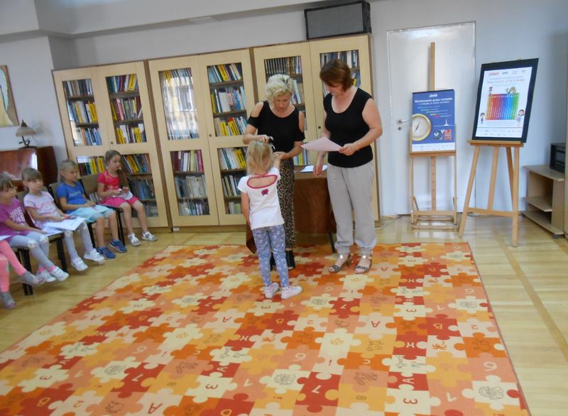 Dzieci za wzorowe uczestnictwo otrzymały dyplomy i pamiątkowe zakładki. Maluchy obiecały, że będą odwiedzać bibliotekę podczas wakacji i nie zapomną o czytaniu książek.
