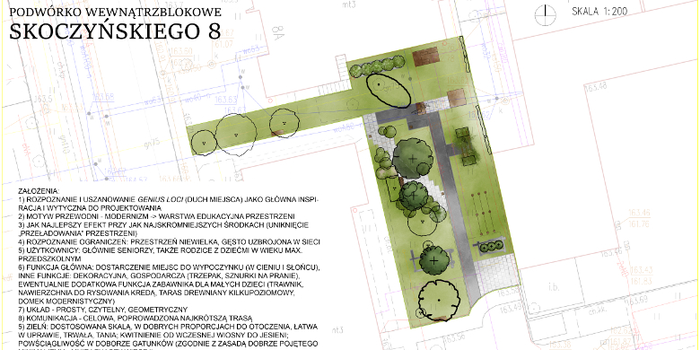 Została już opracowana koncepcja modernizacji pierwszego z podwórek przyblokowych przy ulicy Skoczyńskiego 8. Po zaakceptowaniu koncepcji przez mieszkańców, miasto przystąpi do prac projektowych.