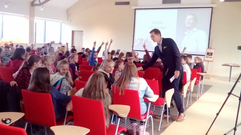 Podsumowanie projektu „Kuźnia bibliolubnych” jakie zorganizowała Miejska Biblioteka Publiczna w Stalowej Woli rozpoczęło się spotkaniem z dziennikarzem, autorem książek dla dzieci i młodzieży Jakubem Skworzem. Pisarz, przedstawił dzieciom z PSP nr 3, PSP nr 7, PSP nr 12 ciekawą historię Adama Mickiewicza oraz zachęcał młodych czytelników do odpowiedzi na pytanie - Czego można nauczyć się od wieszcza 220 lat po jego narodzinach?