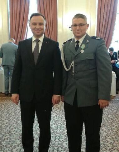 Uroczystość miała miejsce w Pałacu Prezydenckim. Prezydent Andrzej Duda odznaczył wczoraj osoby, które wykazały się odwagą niosąc pomoc innym, narażając przy tym swoje bezpieczeństwo. Wśród odznaczonych był stalowowolski policjant sierżant sztabowy Piotr Śnios, któremu Prezydent wręczył Medal Za Ofiarność i Odwagę.
