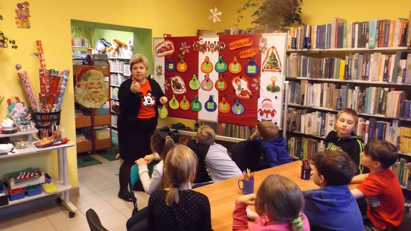 Wspólnie przypomnieliśmy sobie o świątecznych zwyczajach i celu pielęgnowania tradycji. Portrety Mikołaja można podziwiać w holu biblioteki.