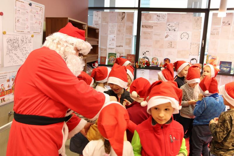 6 grudnia dwie grupy z "zerówki" z przedszkola nr 10 z radością przywitały świętego Mikołaja, który przybył do biblioteki by grzecznym dzieciom rozdać słodkości. Oprócz spotkania i wywiadu z Mikołajem, dzieci wysłuchały opowiadania o tym, gdzie mieszka św. Mikołaj i kto jest jego pomocnikiem.
