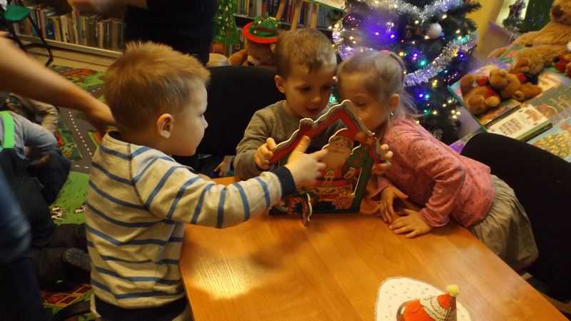 W naszej filii jest zawsze gwarno i wesoło za sprawą milusińskich z Przedszkola nr 5 w Rozwadowie. Dzieci złożyły nam już kolejną świąteczną wizytę i przy okazji miło spędziły czas w bibliotece oglądając „choinkowe nowości książkowe” oraz rozwiązując krzyżówkowe zagadki. Na pamiątkę naszego spotkania maluszki zrobiły Mikołaja z papieru.