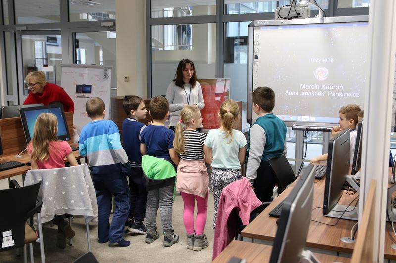 Po obejrzeniu krótkiego filmiku uczniowie poznali ciekawe i pożyteczne możliwości świata wirtualnego, takie jak przeglądanie stron, gry online, korzystanie z komunikatorów, edukacja czy szukanie informacji. Bibliotekarki zwróciły jednak uwagę na to czego nie wolno robić podczas korzystania z Internetu. Dzieci dowiedziały się o potencjalnych zagrożeniach, jakie mogą je spotkać, a także jak przed nimi się ustrzec. Obejrzały ciekawe i co najważniejsze bezpieczne strony dla młodych użytkowników komputerów takie jak sieciaki.pl. Zajęcia podsumował krótki test.