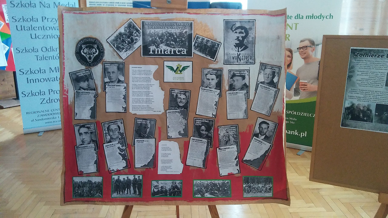 Lekcję uroczyście rozpoczął Dyrektor Wacław Piędel, który przypomniał cele walki żołnierzy wyklętych. Następnie uczniowie zwiedzali wystawę poświęconą temu tematowi, do której część plansz przygotowały uczennice klasy 2C – Aleksandra Dul oraz Patrycja Wolak na zajęciach graficznych. Następnie nauczycielka historii przedstawiła w formie prezentacji multimedialnej najważniejsze informacje dotyczące żołnierzy, którzy walczyli z władzą ludową i nie godzili się na komunizm w państwie polskim. W drugiej części spotkania uczniowie obejrzeli film w reżyserii Konrada Łęckiego „Wyklęty”. W czasie projekcji filmu ich zadaniem było zwrócenie uwagi na losy głównego bohatera, obraz Polski ludowej i wreszcie metody działania władzy komunistycznej. Ostatnią częścią lekcji było podsumowanie oraz krótka dyskusja na temat postaci głównego bohatera, a także okresu stalinizmu w państwie polskim.