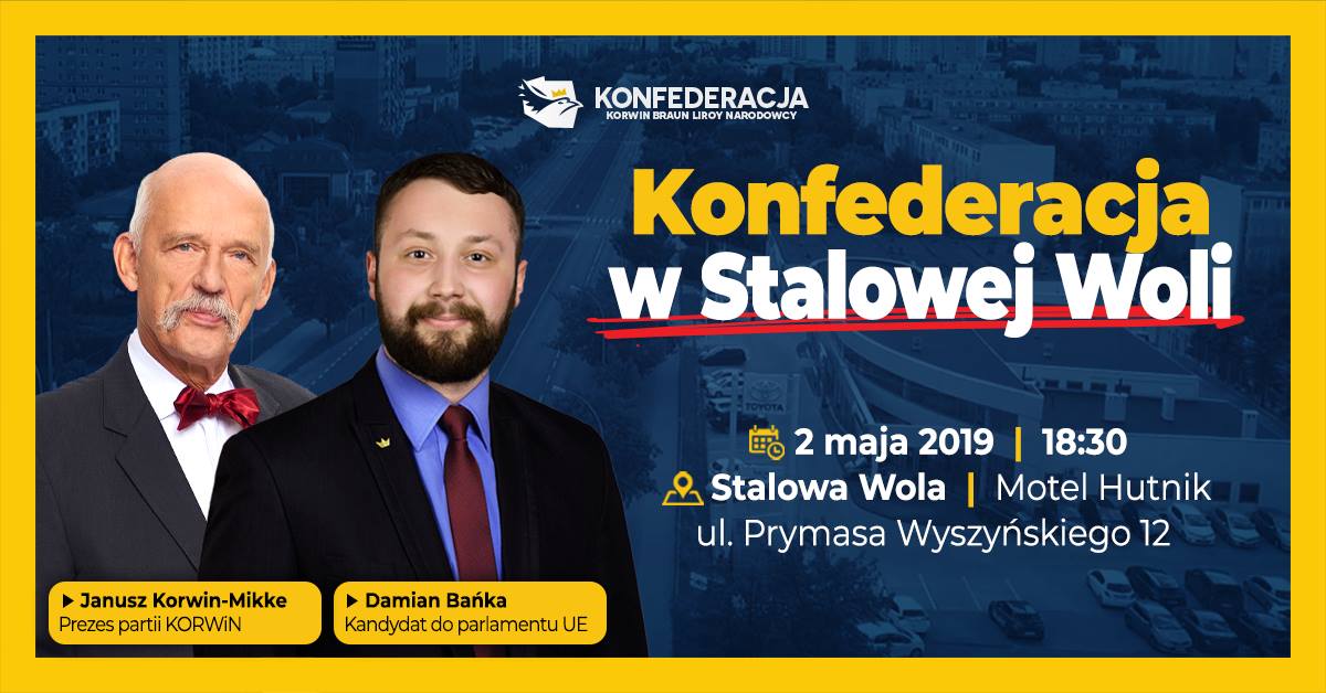 Zapraszamy na spotkanie otwarte z Januszem Korwin-Mikke oraz Damianem Bańką - Prezesem partii KORWiN na Podkarpaciu, kandydatem do PE z ramienia Konfederacji