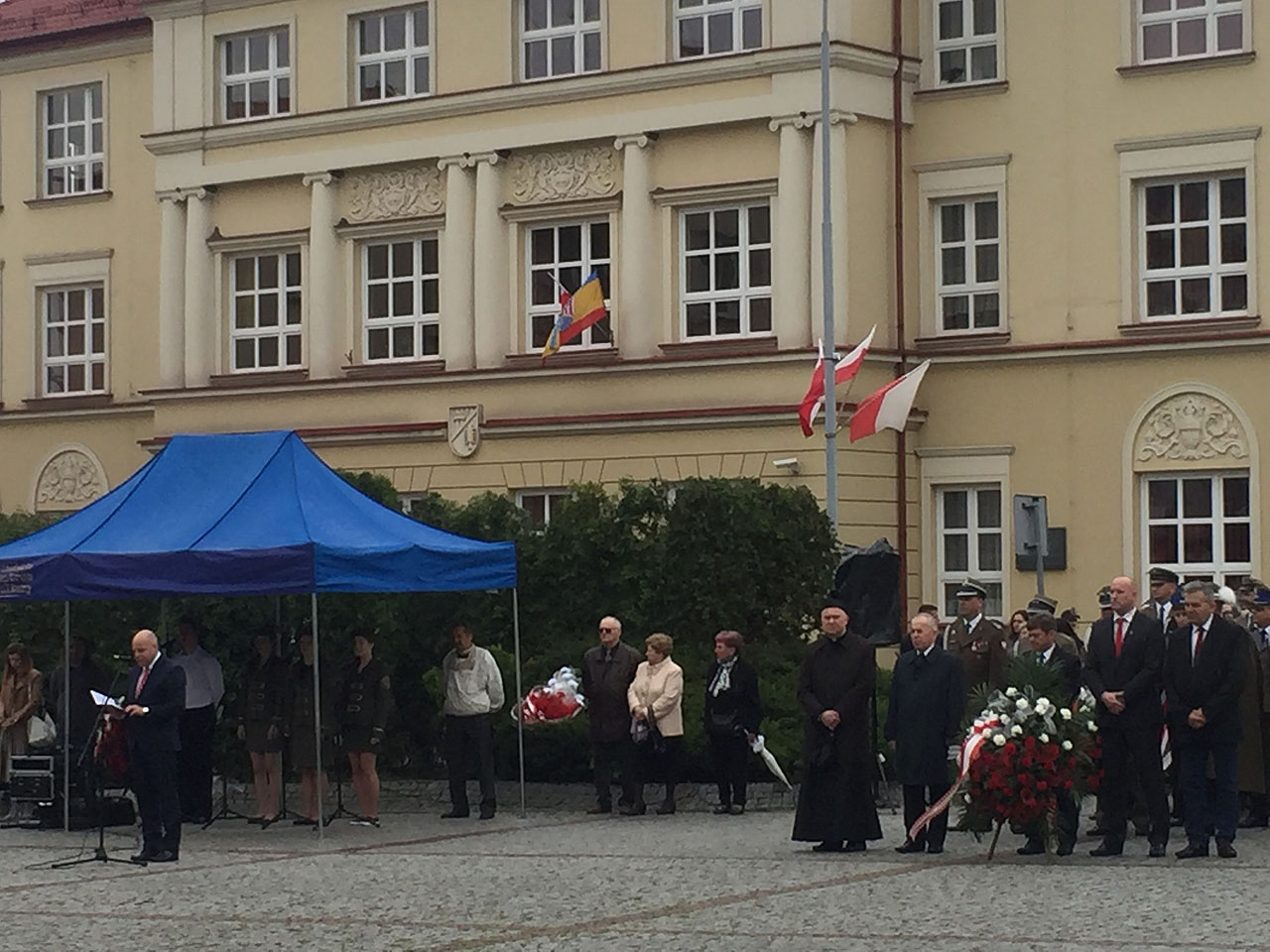 Po Mszy Św. nastąpiło złożenie kwiatów przed Figurą Matki Bożej Bolesnej Królowej Polski, a następnie ulicami miasta przeszedł barwny korowód na Plac Wolności na czele z Reprezentacyjną Sekcją taneczną Mażoretek NCK „Sokół” oraz Orkiestrą Dęta OSP Zarzecze.
