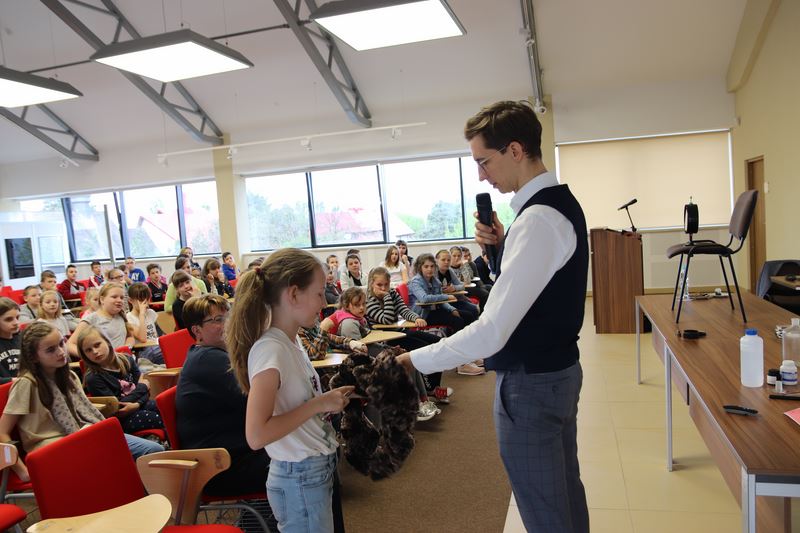 Jakub Skworz, ku wielkiej uciesze dzieci przeprowadził również kilka eksperymentów, ponadto każde dziecko otrzymało od autora zakładkę do książki z autografem. Uczniowie którzy nabyli książki autora, w tym najnowszą „Mania Skłodowska”, mogli liczyć na osobistą dedykację.