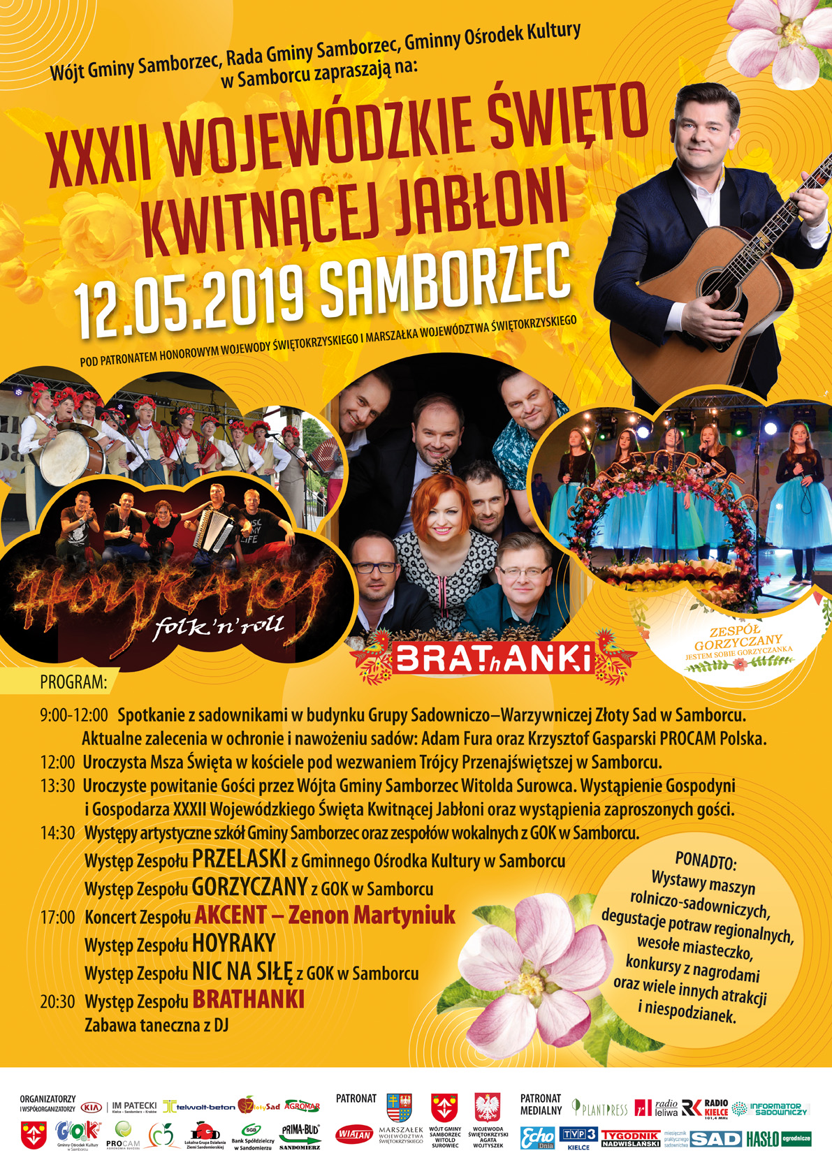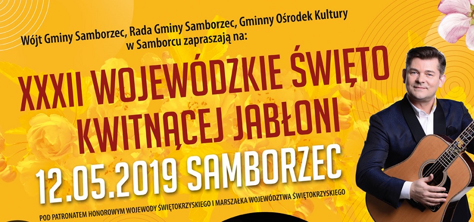 Wójt Gminy Samborzec, Rada Gminy w Samborcu oraz Gminny Ośrodek Kultury w Samborcu zgodnie z wieloletnią tradycją zapraszają na XXXII Wojewódzkie Święto Kwitnącej Jabłoni, które odbędzie się 12 maja 2019 roku.