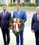 Przed uroczystościami Lucjusz Nadbereżny prezydent miasta Stalowej Woli w towarzystwie Stanisława Sobieraja przewodniczącego Rady Miejskiej w Stalowej Woli i Wojciecha Chodorka wiceprzewodniczącego Rady Powiatu Stalowowolskiego złożył kwiaty w hołdzie Pater Urbis Stalowej Woli Eugeniuszowi Kwiatkowskiemu.