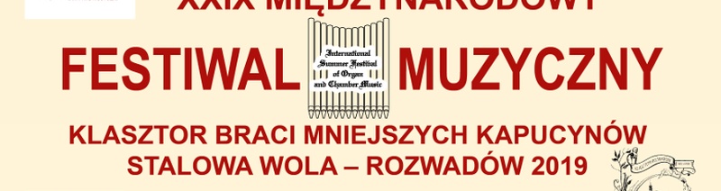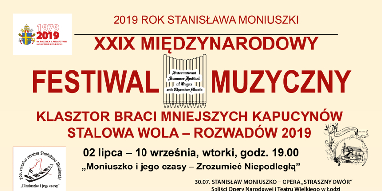 Już 2 lipca 2019 r. rozpocznie się XXIX Międzynarodowy Festiwal Muzyczny Stalowa Wola – Rozwadów 2019 zorganizowany pod hasłem „Moniuszko i jego czasy – Zrozumieć Niepodległą”. Koncerty odbywać się będą od 2 lipca do 10 września 2019 r., w każdy wtorek o godz. 19.00 w Klasztorze Braci Mniejszych Kapucynów w Rozwadowie.