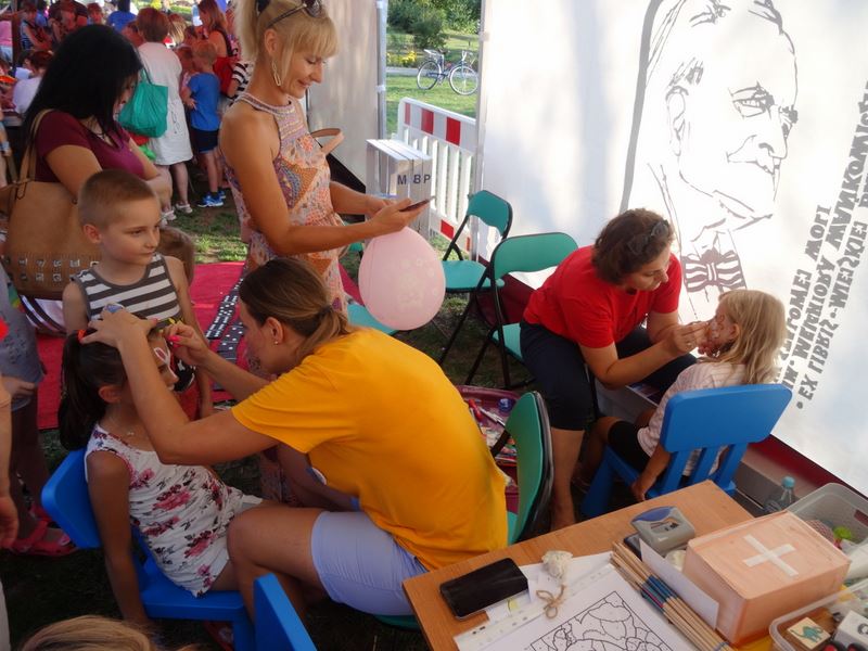 Czytelnia pod chmurką, stemplowanie, zakładki do książek, planszowe gry plenerowe, kolorowanki i malowanie twarzy… to część atrakcji, jakie przygotowaliśmy dla dzieciaków, które zjawiły się w namiocie Miejskiej Biblioteki Publicznej podczas imprezy Miejskie Zakończenie Wakacji. Bawiliśmy się wspólnie 31 sierpnia, a nasze stoisko zlokalizowane było obok Parku Wodnego gdzie radośnie bawiły się dzieciaki.