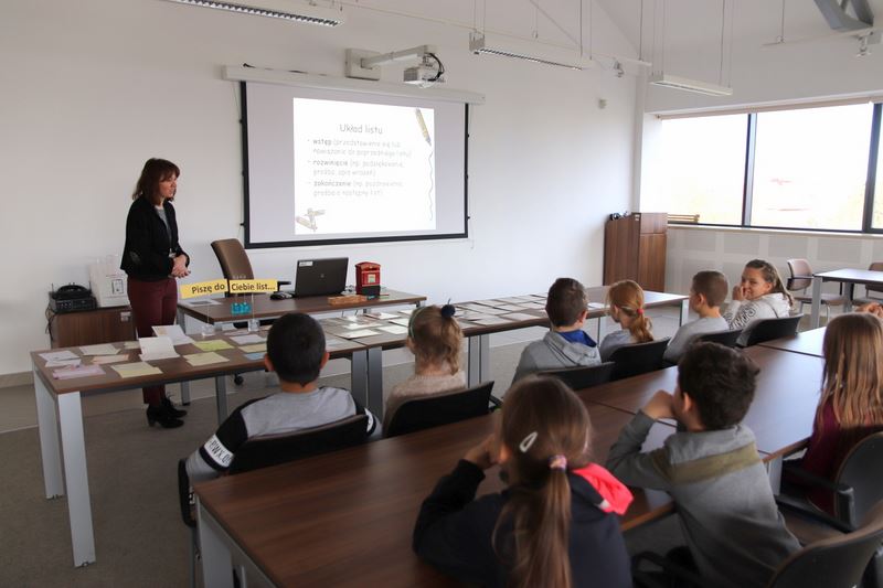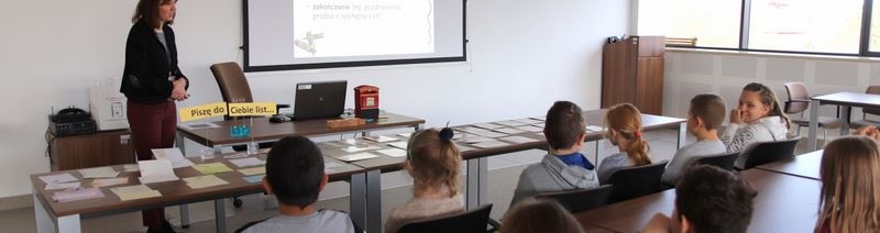 Jeszcze kilka lat temu był to bardzo popularny rodzaj komunikacji, który obecnie jest wypierany przez pocztę elektroniczną czy smsy. Staramy się przybliżyć uczniom złote zasady pisania tradycyjnych listów oraz sposób adresowania koperty, czy kartki pocztowej. Po prezentacji, która zawierała część teoretyczną dotyczącą pisania listów przyszedł czas na część praktyczną. Trzecioklasiści najpierw projektowali własne znaczki pocztowe, gdyż przy pogadance o listach nie może zabraknąć wspomnienia istoty znaczków pocztowych i ich krótkiej historii. Następnie uczestnicy spotkania adresowali pocztówki, które można bezpłatnie wysłać z ramach akcji „Mamy Niepodległą!”. Są to specjalnie przygotowane na tą okazję kartki tradycyjne, które po zaadresowaniu i wypełnieniu życzeniami wysłaliśmy swoim najbliższym.
