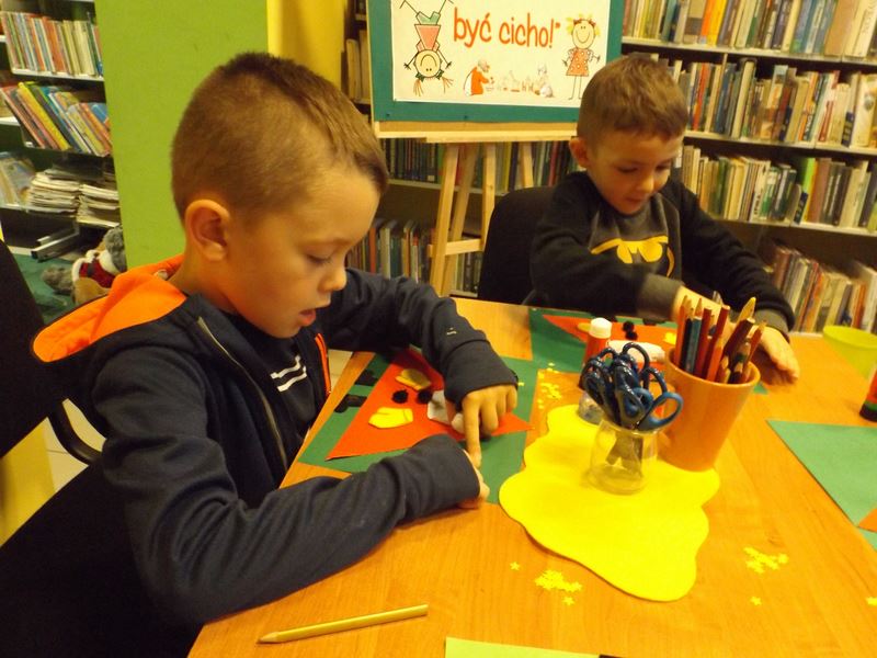 Wiedzą o tym przedszkolaki z Przedszkola nr 5 w Rozwadowie. Wizyta w bibliotece to nie tylko okazja do głośnego czytania dzieciom, ale też do zabawy i prac plastycznych. Dwie grupy maluchów robiły pszczółki do czytanej wcześniej „Dobrółki Pszczółki” i Mikołaje, bo przecież każde dziecko wie, że Mikołaj niebawem przybędzie do grzecznych dzieci.