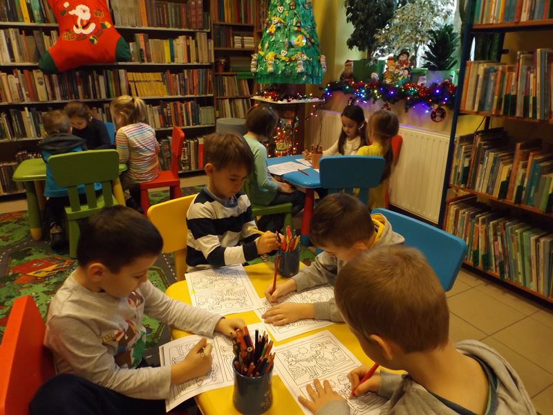 Raz w miesiącu, w piątek, spotykamy się z oddziałem przedszkolnym  z PSP nr 9, by poczytać książkę, porozwiązywać zadanka i trochę „popsocić” w bibliotece. Każda wizyta maluchów jest mile widziana, gdyż mamy nadzieję, że będą to nasi stali czytelnicy. Na razie wystarczy nam głośne czytanie i pogadanki, w  których najmłodsi chętnie uczestniczą.