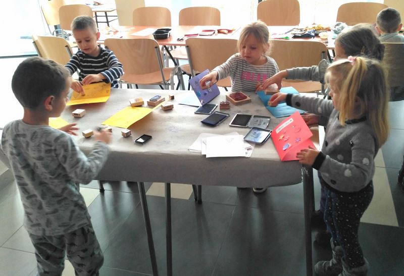 Przedszkolaki wzięły udział w pogadance o tradycji i zwyczajach świąt Bożego Narodzenia. Na początek pojawiły się symbole związane z wigilią, tj. pierwsza gwiazdka, opłatek, dodatkowe nakrycie, sianko, potrawy, wspólne kolędowanie czy pasterka. Dzieci chętnie opowiadały o zwyczaju ubierania choinki. Nie mogło zabraknąć rozmowy o prezentach, na które dzieci czekają przez cały rok. Omówiliśmy razem także szopki oraz kolędników, czyli przebierańców, którzy dawniej chodzili po domach i życzyli wszystkim pomyślności w nadchodzącym roku, śpiewali przy tym kolędy oraz odgrywali scenki związane z Bożym Narodzeniem. Pojawił się również temat Sylwestra i Nowego Roku. W kolejnej części spotkania grupa układała własną świąteczną historyjkę, rozwiązywała quiz o wigilii oraz zimowe zagadki. Każdy mógł wylosować dobry uczynek do spełnienia z okazji zbliżających się świąt. Ponadto przedszkolaki miały okazję wykonać kartkę bożonarodzeniową dla bliskiej osoby. Na zakończenie dzieci wysłuchały głośnego czytania świątecznych opowieści.