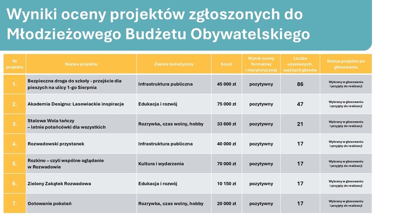 Wyniki głosowania na Zielony i Młodzieżowy Budżet Obywatelski