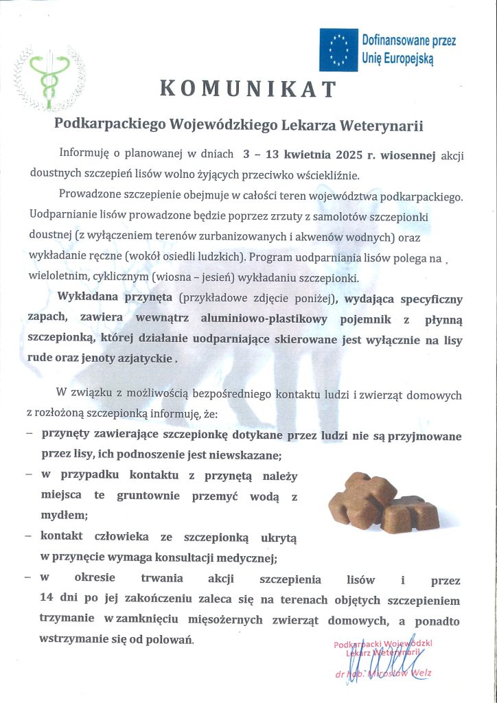 Komunikat Podkarpackiego Wojewódzkiego Lekarza Weterynarii